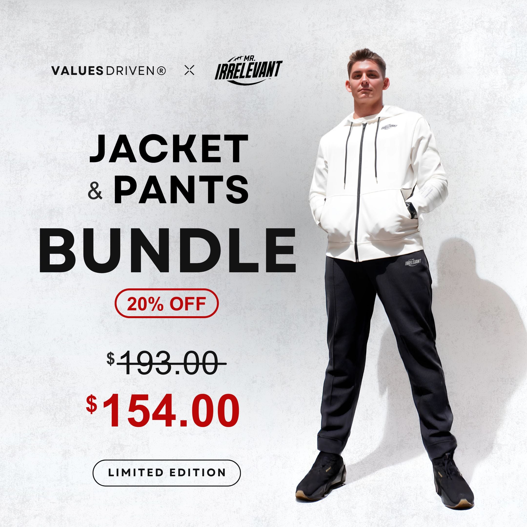 Crafted for the overlooked, the doubted, and the underestimated, the Mr. Irrelevant Bundle brings together two defining pieces from the Signature Collection: the Perseverance Jacket and the Determination Pants.